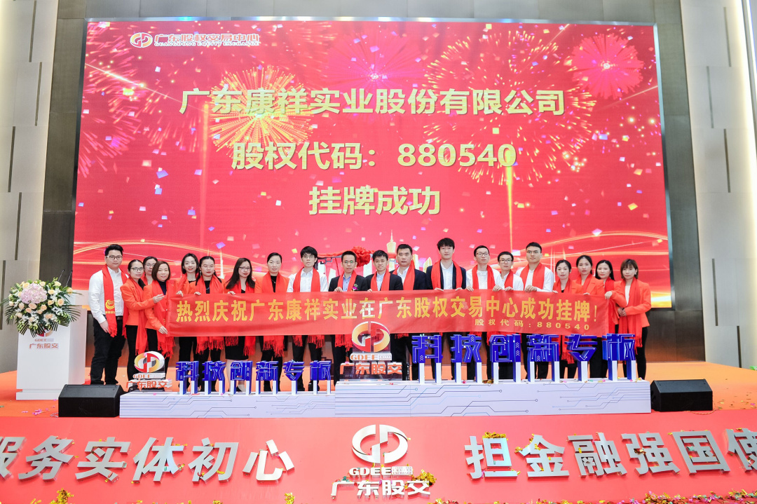 2021年3月23日上午,伴隨著響亮的敲鑼聲,廣東康祥實業股份有限公司(股權代碼:880540)在廣東股權交易中心標準板成功掛牌,標志著廣東康祥在深耕行業同時,正式進入資本市場!