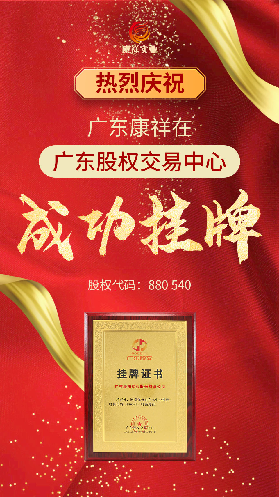 廣東康祥在廣東股權交易中心成功掛牌!